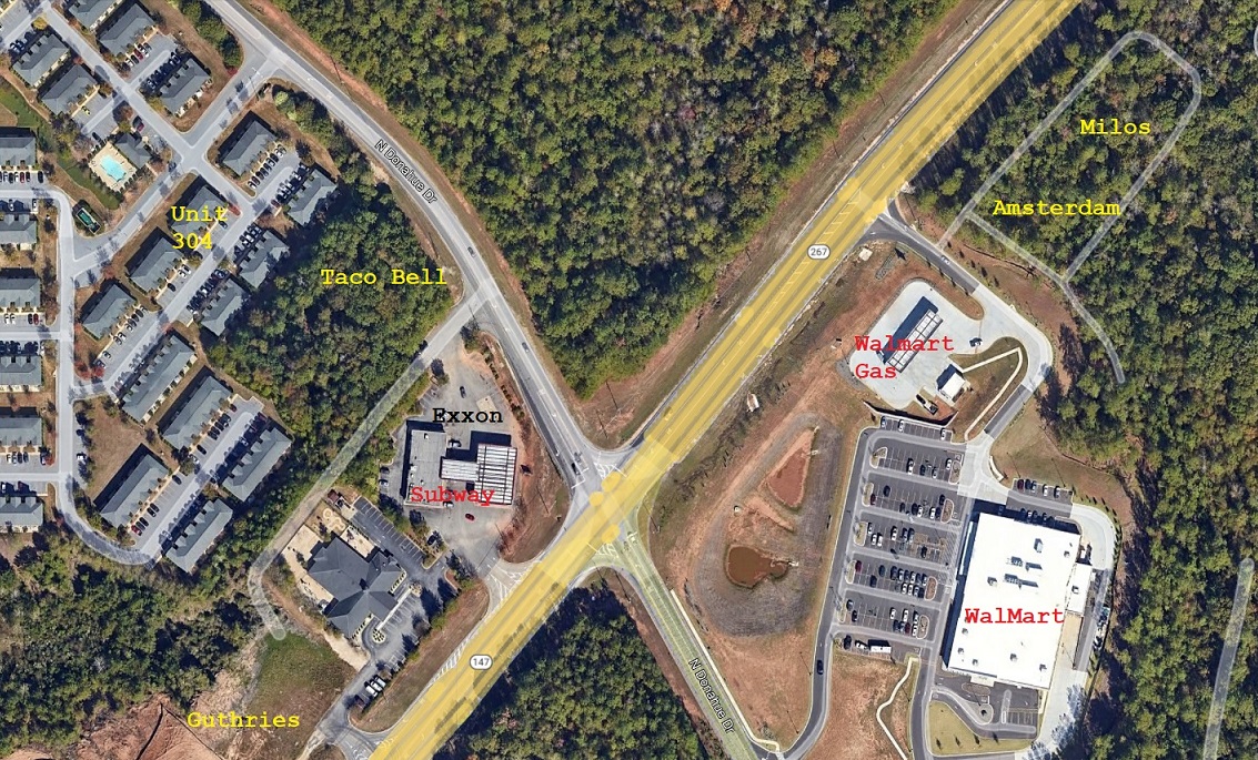 Restaurants and gas stations near unit 304.